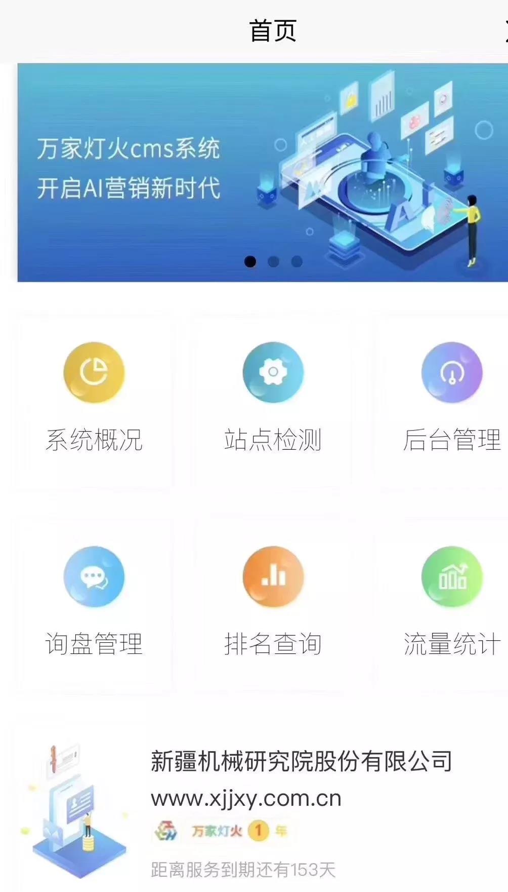 ??萬家燈火APP營銷系統是一個能隨時隨地了解企業自身網絡運營狀況的綜合管理APP,包含系統概況、站點檢測、后臺管理、詢盤管理、排名查詢、流量統計6大功能。旨在幫助企業實現網絡運營的輕松管理,讓企業在“互聯網 ”時代下更加賺錢。