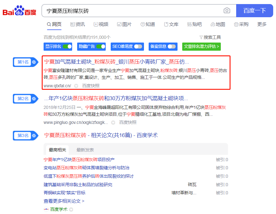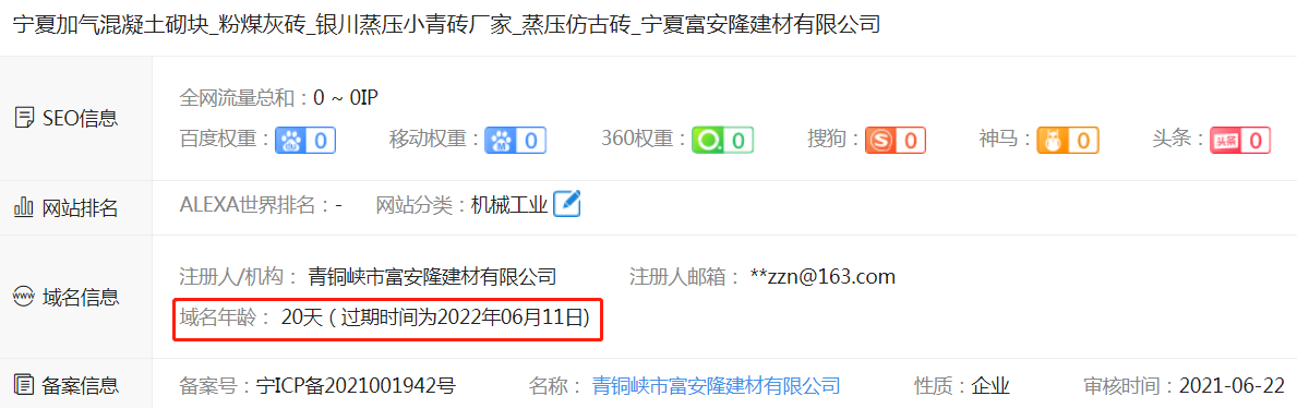 富安隆建材網(wǎng)站上線后,僅用了10天的時間,就被百度收錄,關(guān)鍵詞:寧夏蒸壓粉煤灰磚、寧夏粉煤灰磚、寧夏蒸壓仿古磚均占據(jù)首頁*名。此外,富安隆建材網(wǎng)站的到訪率和詢盤量正在持續(xù)上升中,相信很快就能迎來成交。