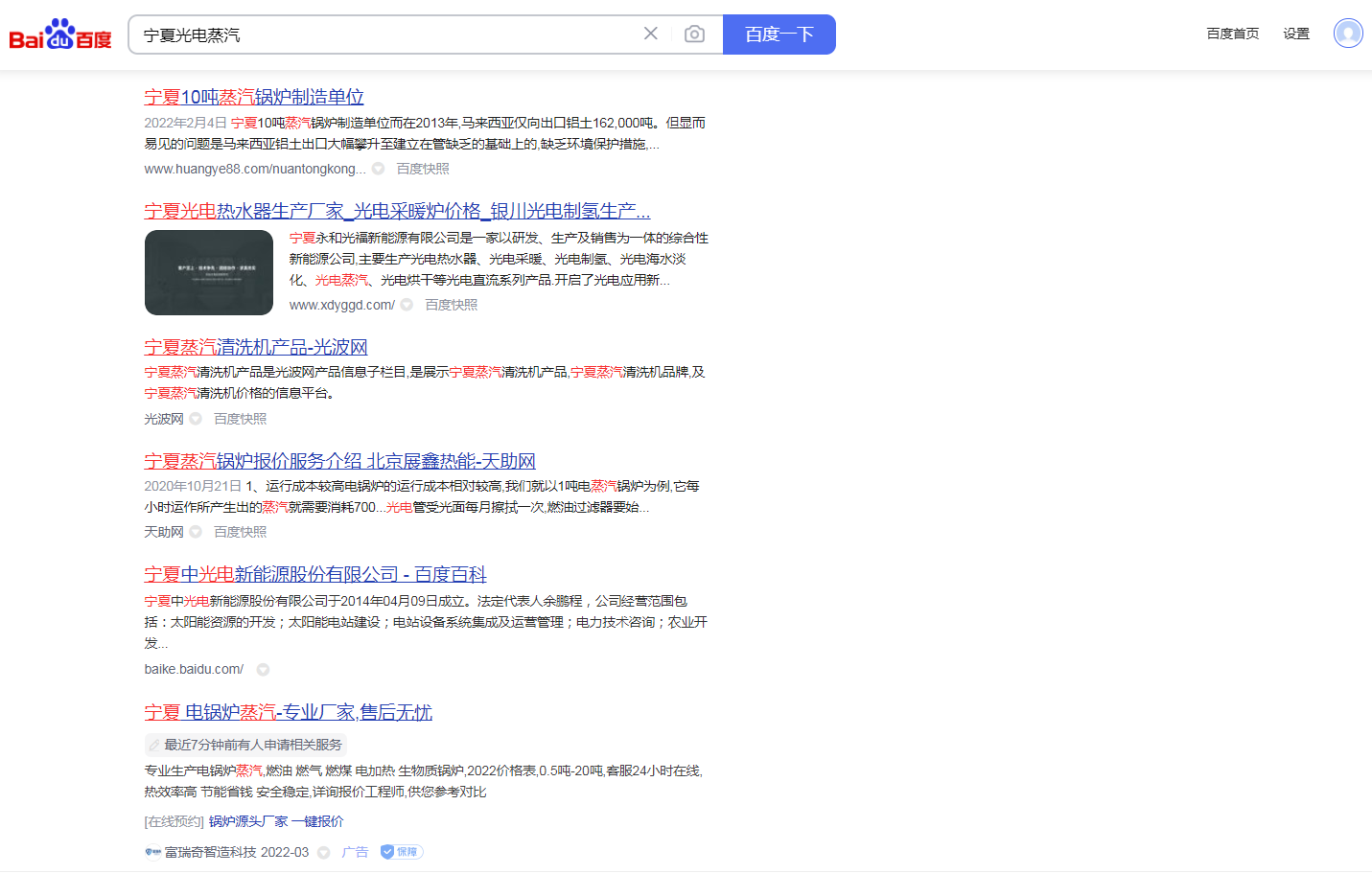 此外,萬家燈火CMS系統(tǒng)助力永和光福新能源官網(wǎng)上線半個(gè)月被搜索引擎收錄,且關(guān)鍵詞:寧夏光電蒸汽、銀川光電烘干技術(shù)、寧夏光電熱水器生產(chǎn)廠家、寧夏光電海水淡化均在百度首頁展現(xiàn),讓客戶無論是通過PC端還是移動(dòng)端,都能隨時(shí)隨地找到永和光福新能源。