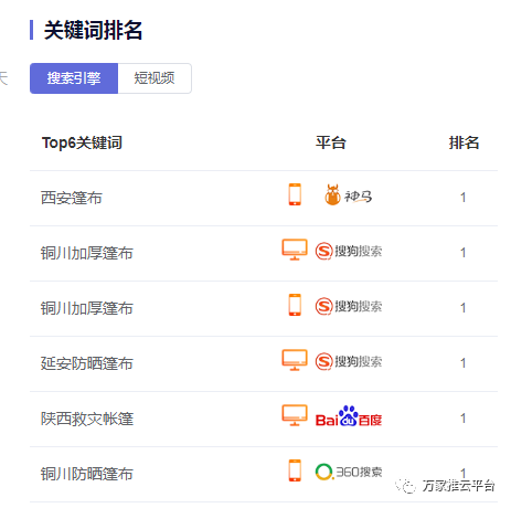 >>>視頻:策劃剪輯發(fā)布多條視頻,咸陽三防篷布廠商、陜西三防篷布生產(chǎn)等關(guān)鍵詞均在抖音搜索前列展現(xiàn)。