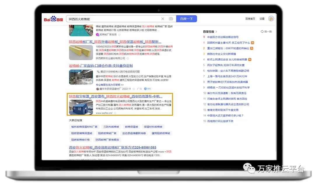 萬家推云平臺通過企業(yè)官網(wǎng)SEO、知識獲客、分類信息、B2B商盟、視頻發(fā)布等工具在各大搜索引擎平臺,為中帆盛森企業(yè)進(jìn)行關(guān)鍵詞推廣以及內(nèi)容發(fā)布。通過運營人員專業(yè)布局,成功為中帆盛森增強(qiáng)企業(yè)曝光度,獲取核心排名,抓住更多流量。